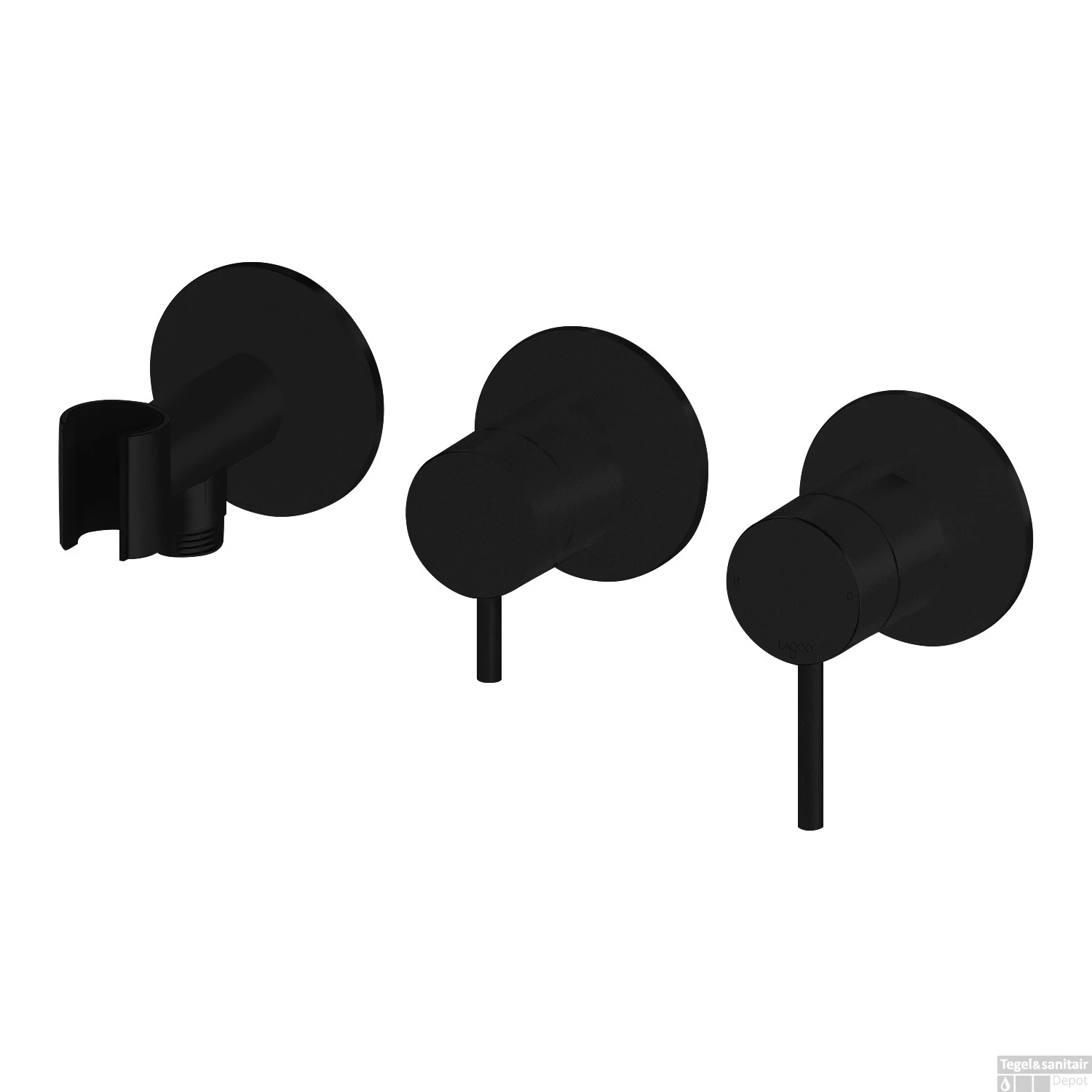 Inbouw Douche/Badmengkraan Lagoo Garda met Omstel en Handdouchehouder Messing Mat Zwart