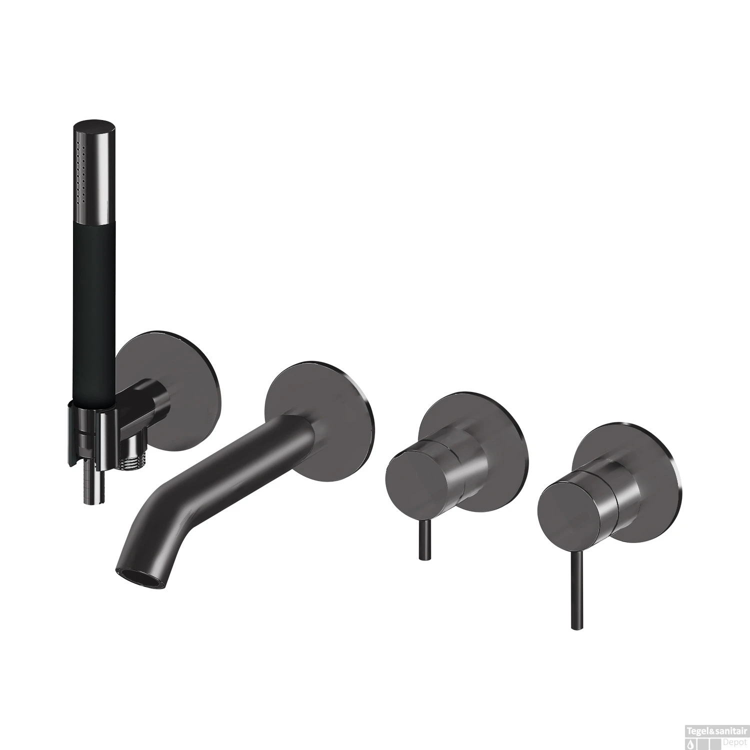 Inbouw Douche/Badmengkraan Lagoo Garda met Omstel en Handdoucheset Messing Gunmetal PVD