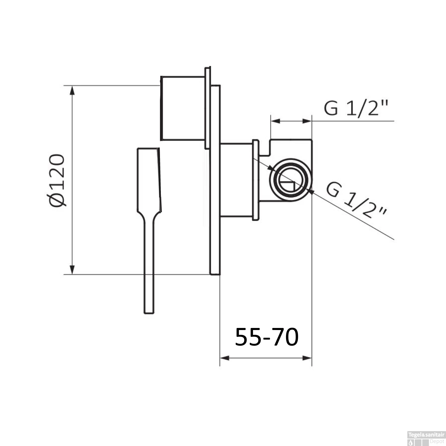 Specificaties Inbouw Douchekraan GRB Aura 2-Wegs Zwart: