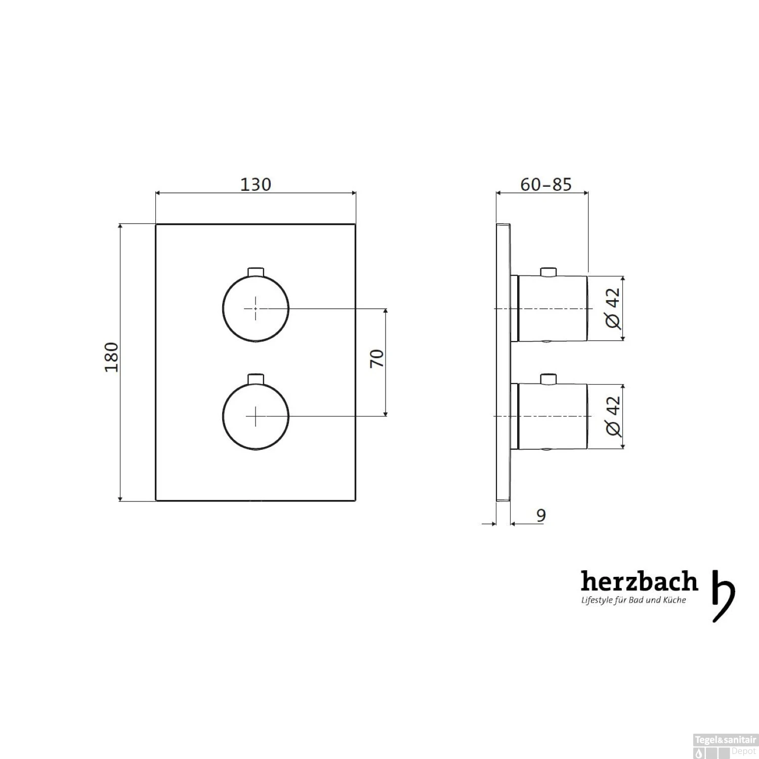Specificaties Inbouw Douchekraan Herzbach Design IX Zwart: