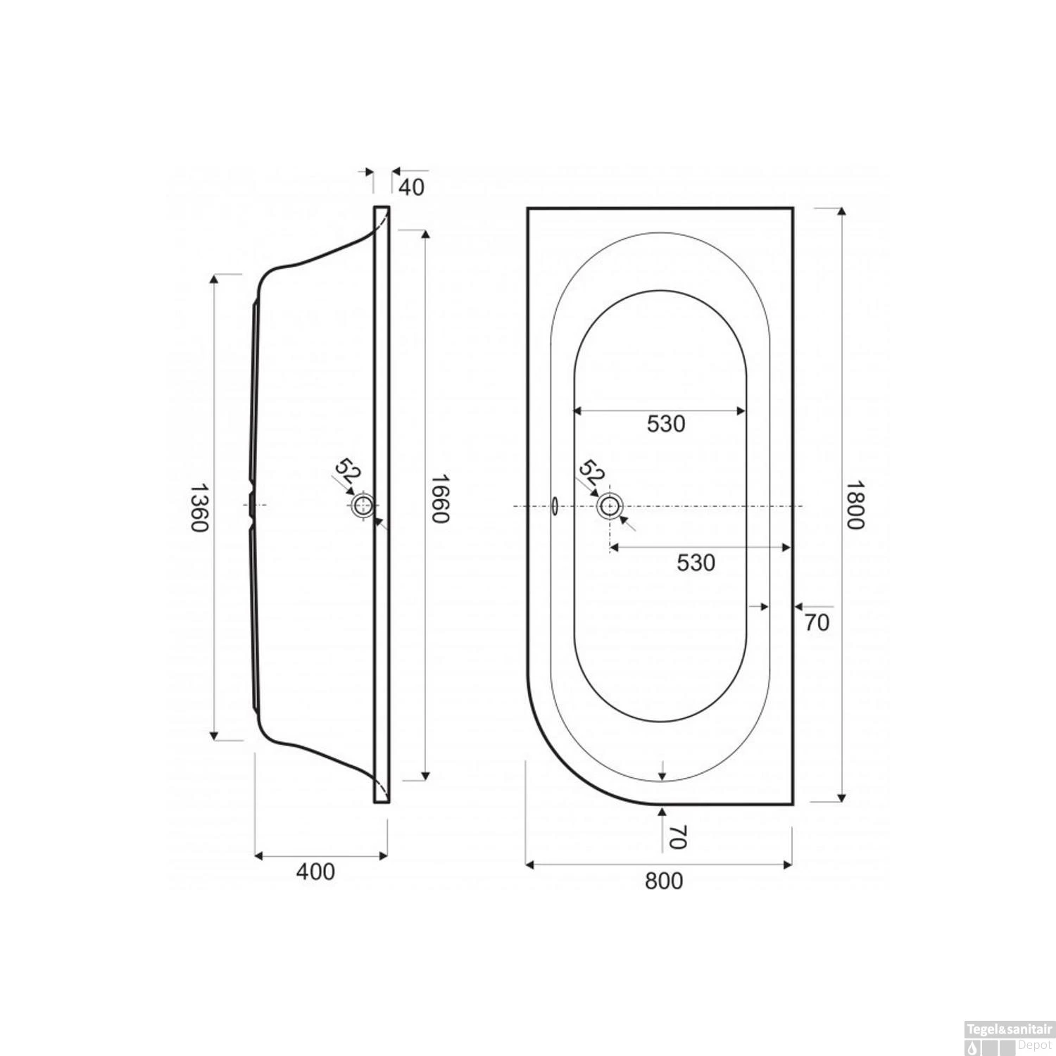 Inbouw Duo Ligbad Wisa Benevento Triple 180x80x40 cm Links Wit