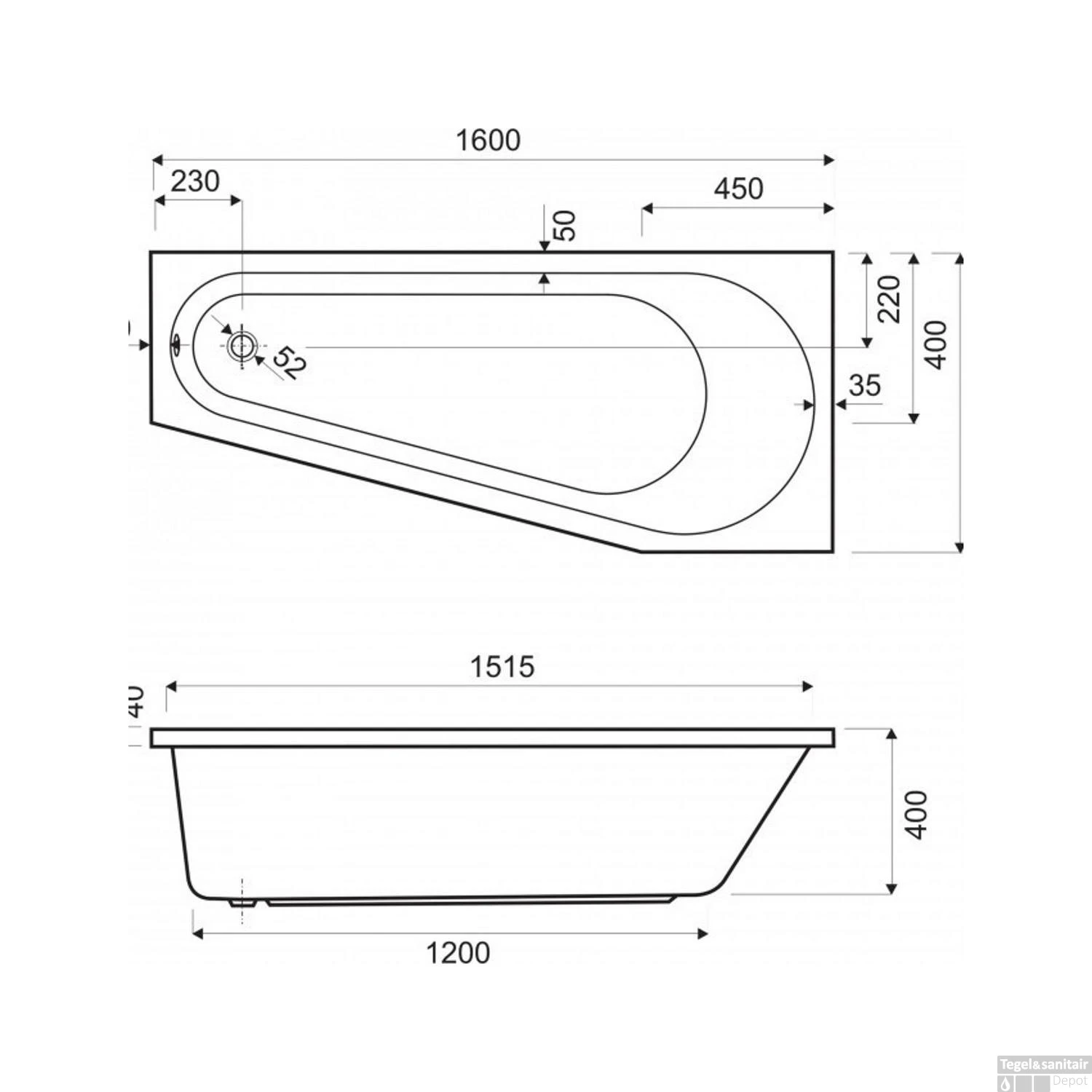 Hoekbad Wisa Avellino 160x70x40 cm Rechts Wit