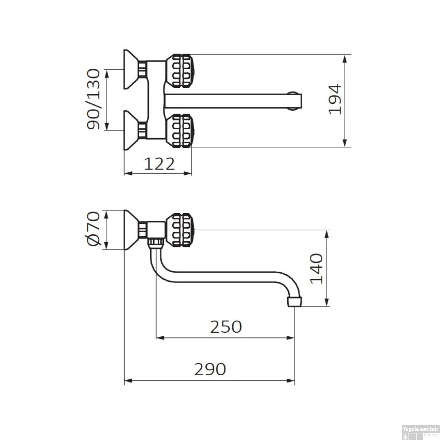 Specificaties Inbouw Keukenkraan GRB Kitchen Klassiek Design Messing Chroom: