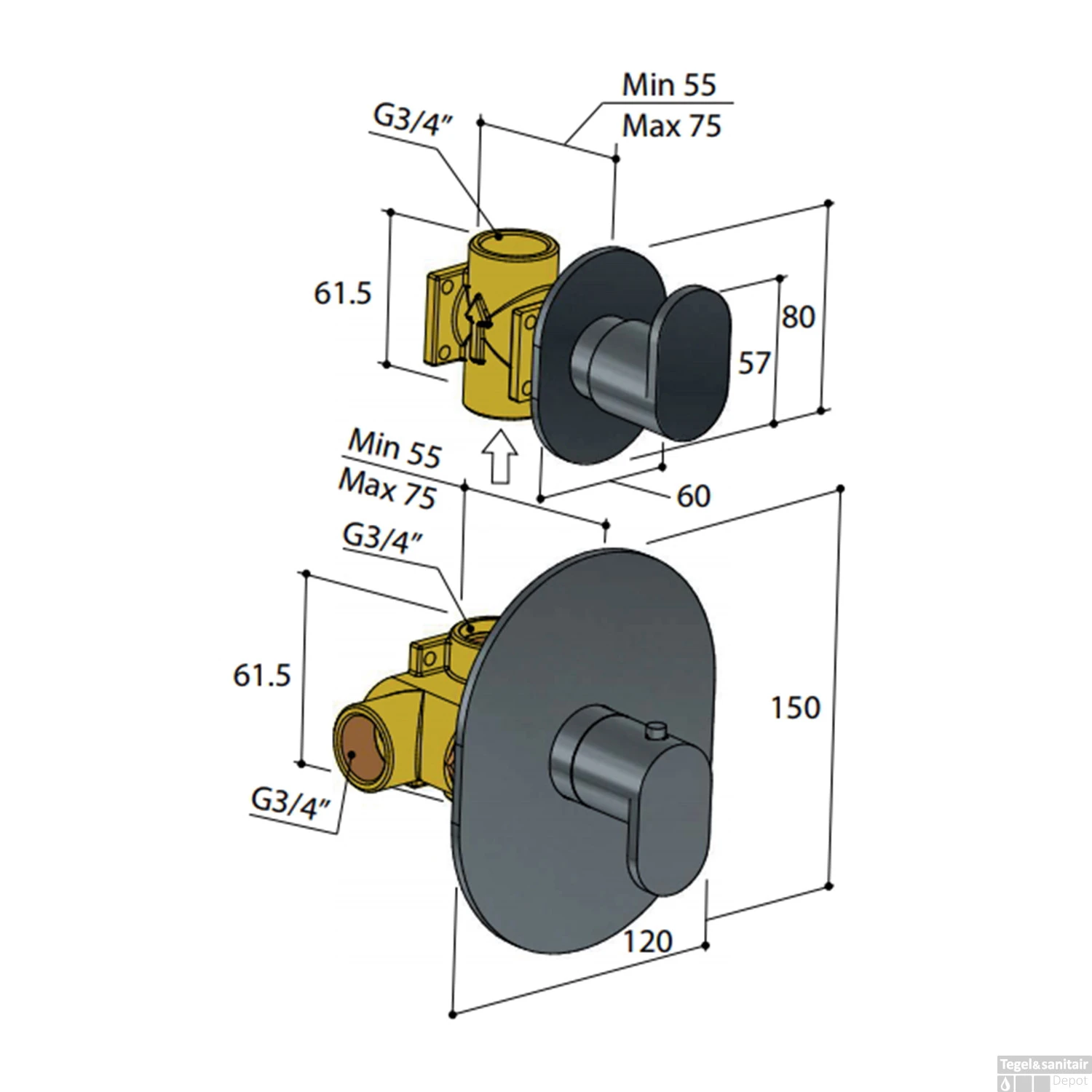 - Maat draadaansluiting (inch): 3/4′
