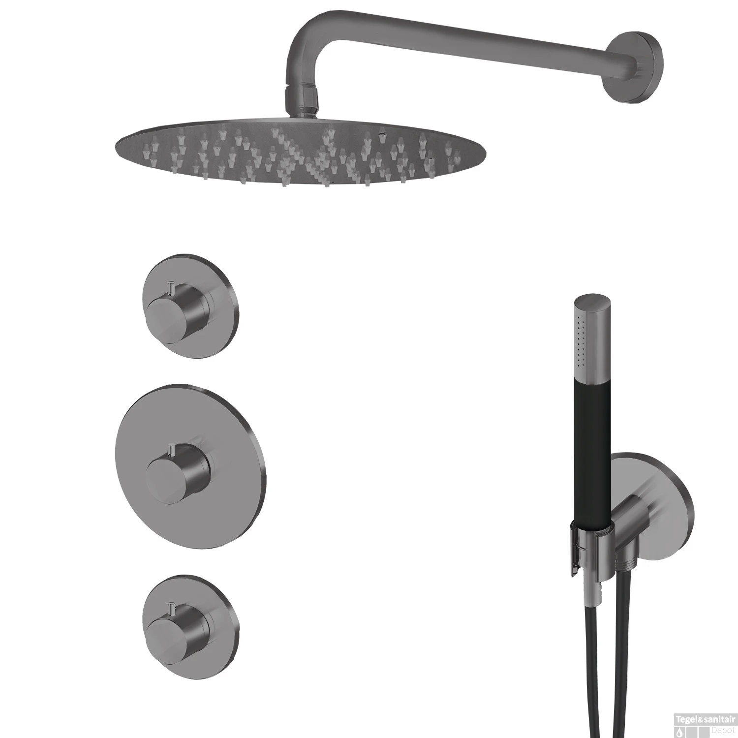 Inbouw Thermostatische Regendoucheset Lagoo Garda met 2 Stopkranen en Handdouche Gunmetal