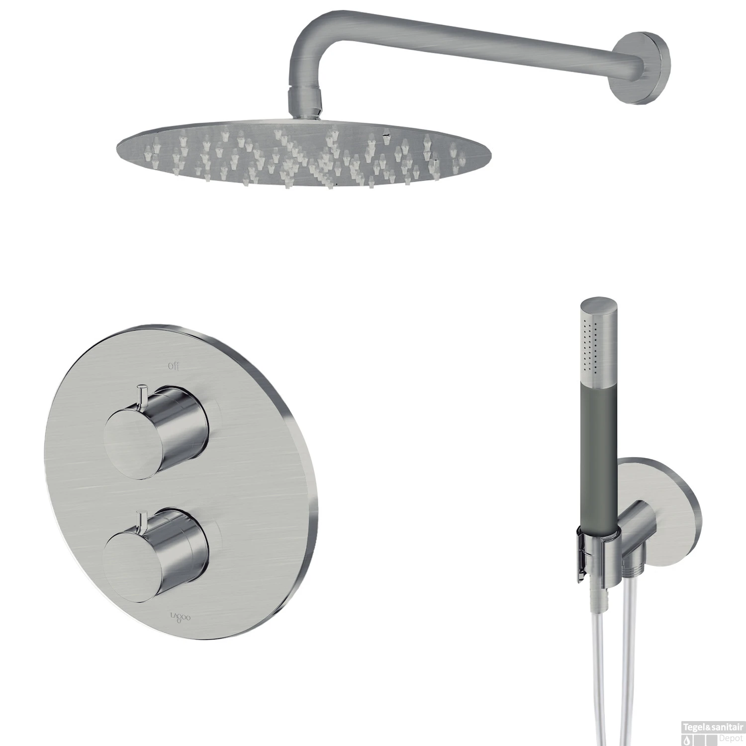 Inbouw Thermostatische Regendoucheset Lagoo Garda met 2-Weg Omstel en Handdouche Geborsteld Nikkel