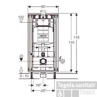 Inbouwreservoir voor Hoekmontage Geberit Gis Easy 118x60x35 cm: