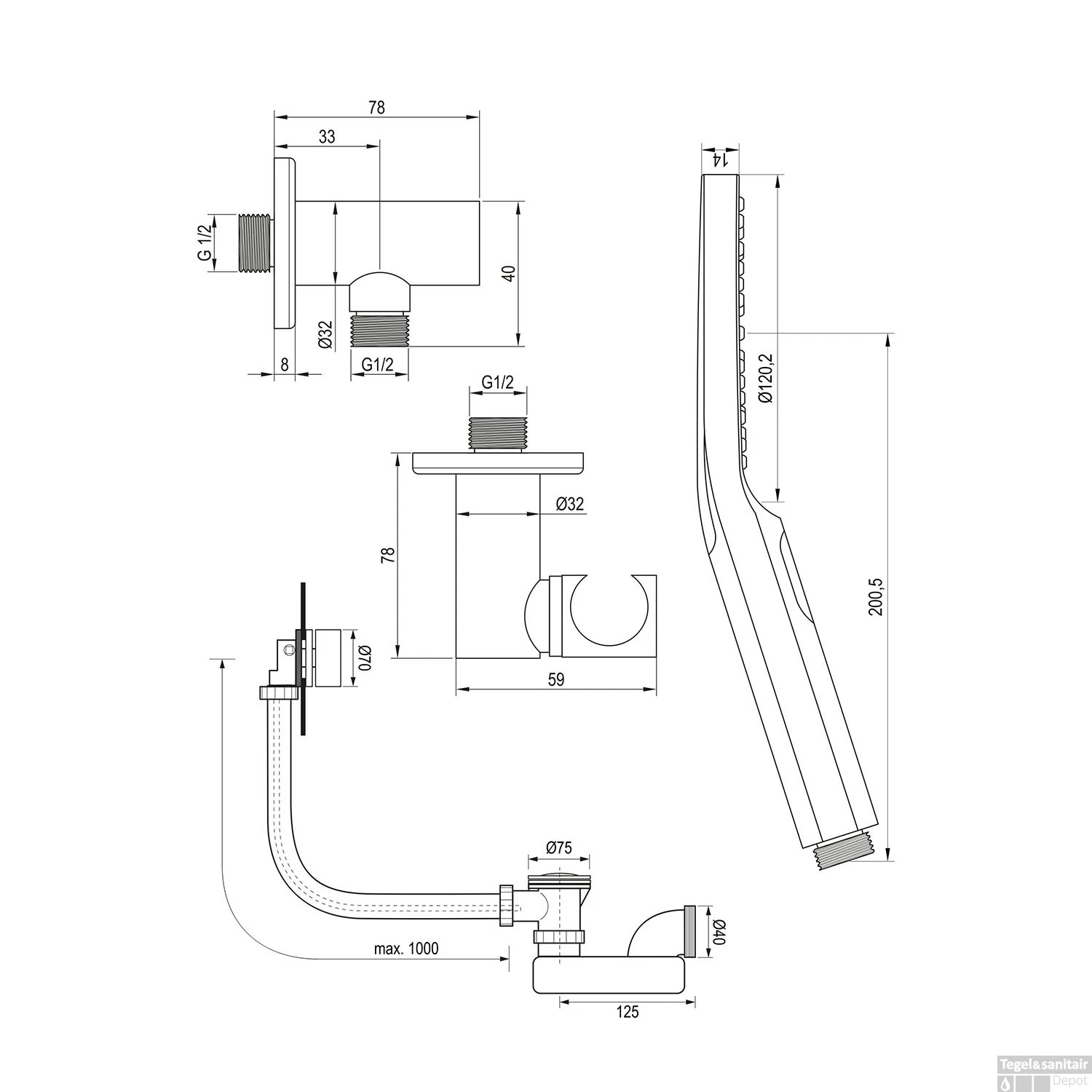 De handdouche is voorzien van het push button select systeem, hiermee kiest u gemakkelijk tussen de verschillende straalsoorten van de handdouche door één druk op de knop! De handdouche is gemaakt van ABS (kunststof), zodat de handdouche niet heet aanvoelt. Deze inbouwthermostaatset bevat ook een badvulwaste. Met de badafvoerplug, zorgt u ervoor dat het bad afgesloten is, zodat het vol kan lopen met water.