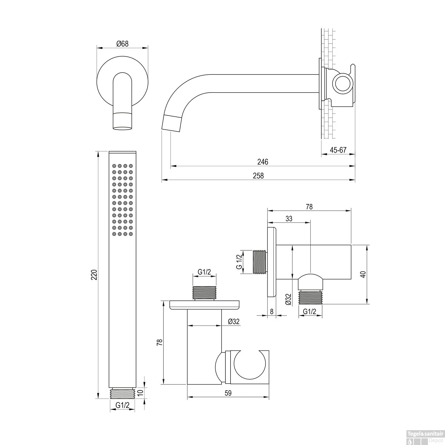 - Met Douchegarnituur