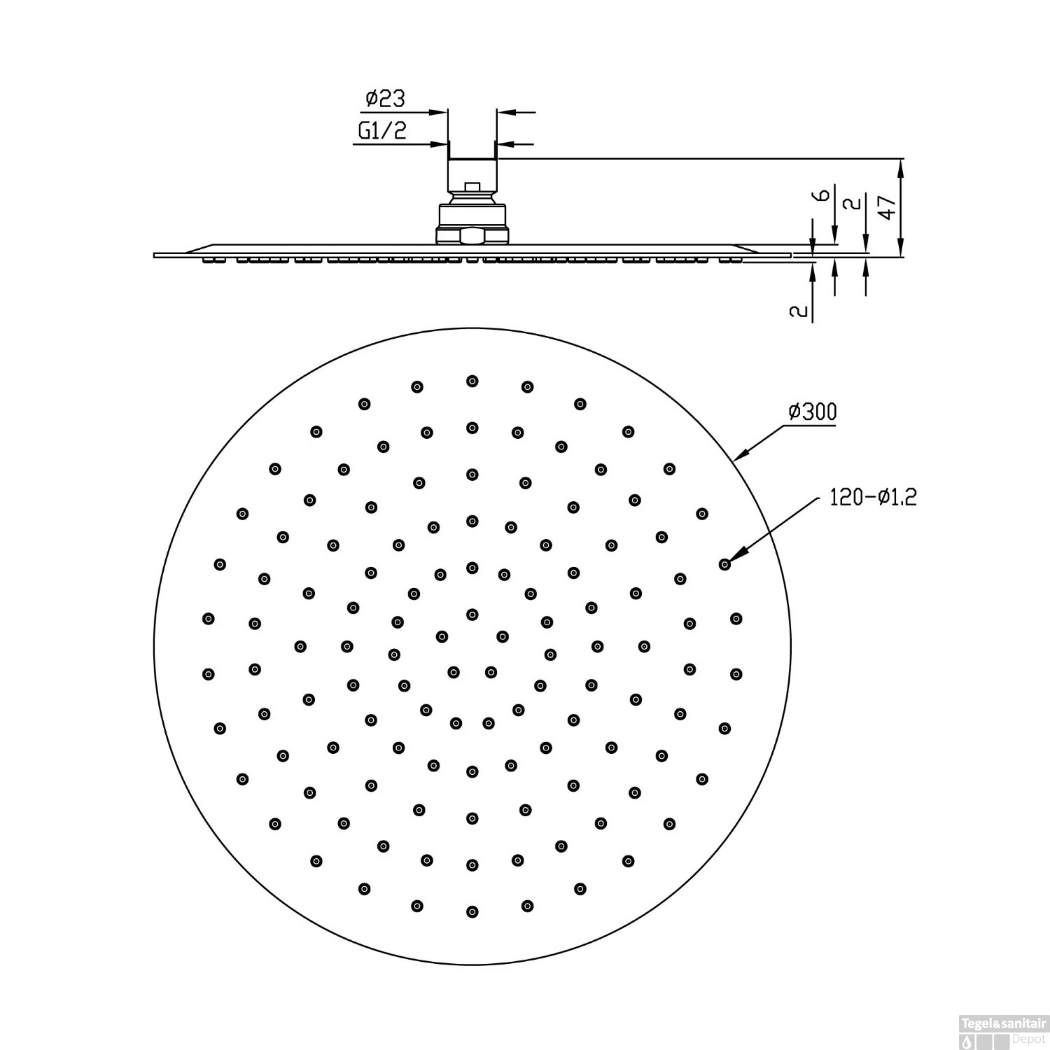 - Ronde hoofddouche 30 cm RVS