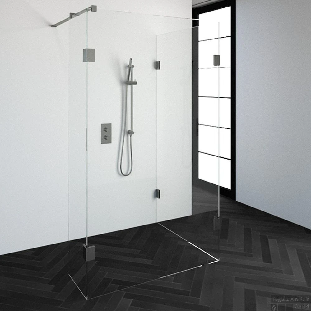 Deze complete inloopdouche bestaat uit twee inloopwanden en en een zijwand met RVS beslag. Inclusief glasbehandeling. De hoogte van de inloopdouche is 200 cm. Hij is 118,3 cm breed en 97,7 cm diep. Deze inloopdouche straalt luxe uit door zijn design en kleur.