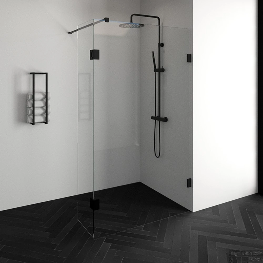 Deze complete inloopdouche bestaat uit een inloopwand en een draaibare zijwand met Mat Zwart beslag. Inclusief glasbehandeling en optionele kunststof profielen. De hoogte van de inloopdouche is 200 cm. Hij is 117,7 cm breed en maximaal 200 cm diep. Deze inloopdouche straalt luxe uit door zijn design en kleur.