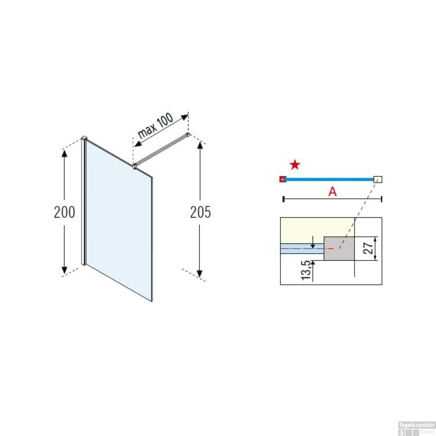 Deze inloopdouche heeft een breedte van 60 cm, een hoogte van 200 cm en een glasdikte van 8 mm. Bovendien is de Kuadra H inloopdouche in breedte verstelbaar tot en met 57 cm. De douchewand wordt geleverd inclusief een stabilisatiestang waarmee deze inloopdouche eenvoudig aan de muur in uw doucheruimte gemonteerd kan worden.