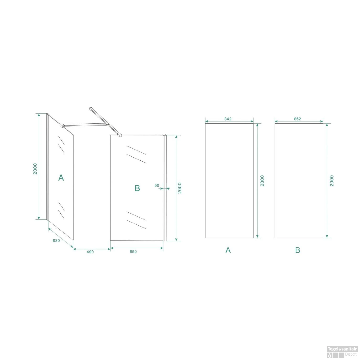Specificaties Inloopdouche Combinatie-Set 120x90x200 cm Glasdikte 10 mm NanoWiesbaden: