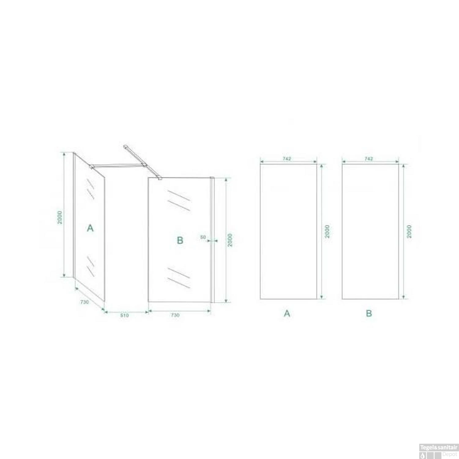 Specificaties Inloopdouche Combinatie-Set 130x80x200 cm Glasdikte 10 mm Nano Wiesbaden: