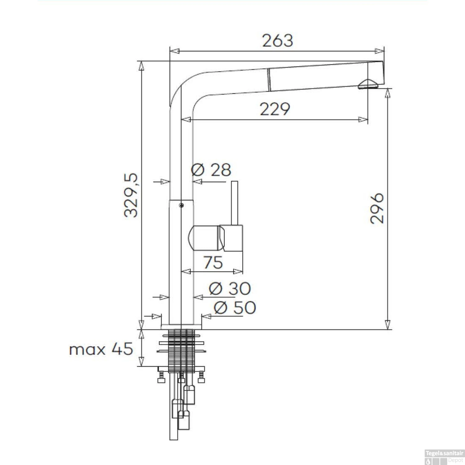 Specificaties Keukenmengkraan Lagoo Garda met Draaibare Uitloop Recht en Uitneembare Handdouche Messing Gunmetal: