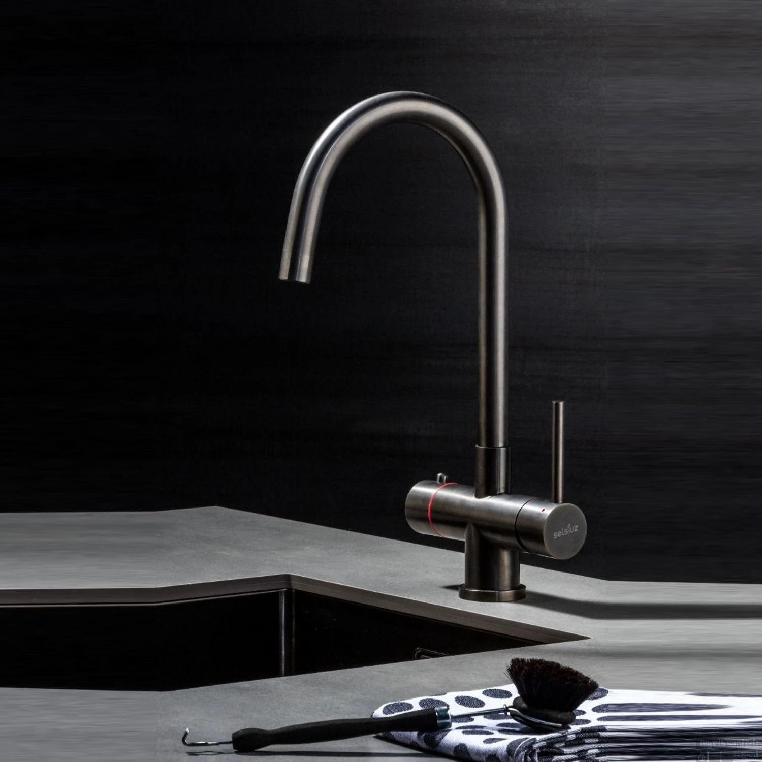 Kokendwaterkraan Selsiuz Steel Rond Gun Metal Inclusief Combi Extra Boiler