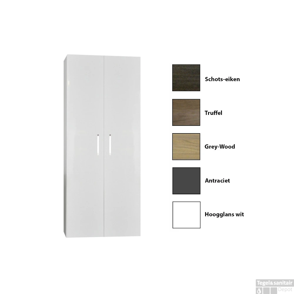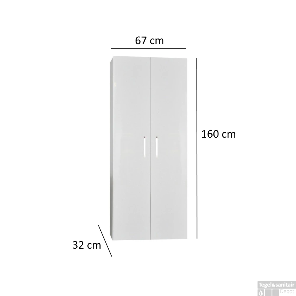 Kolomkast Sanicare Q6/Q14/Q16 2-Deurs Soft-Closing Chromen Greep 160x67x32 cm Hoogglans Wit