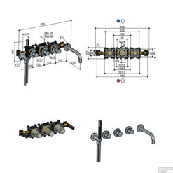Afbouwdeel Hotbath Archie Inbouw Bad Thermostaat 2 Stopkranen Met Uitloop Geborsteld Messing PVD