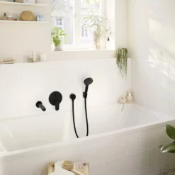 Badmengkraan Inbouw Bongio Squadra 16 Cm Uitloop Met Handdoucheset En 2-Weg Omstel Mat Zwart
