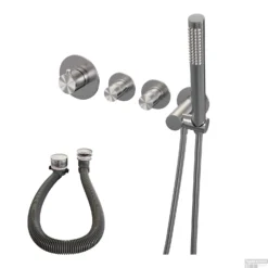 Inbouwthermostaatset Brauer Brushed Carving Incl Staafhanddouche En Badafvoer Geborsteld RVS