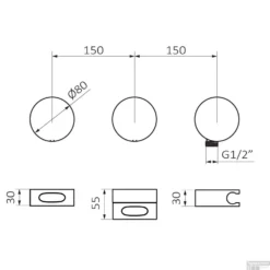 Douchethermostaat 3-Wegs GRB InCool Horizontaal Met Douche Aansluiting Messing Zwart (dummy)