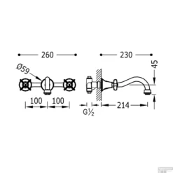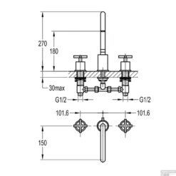 Wastafelkraan Best Design Schmidt Inbouw 2 Hendels 1/2″ Chroom Met Muurbeugel
