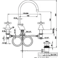 Wastafelmengkraan Cisal Barcelona 3-gats 300mm BA0135132A RVS Look