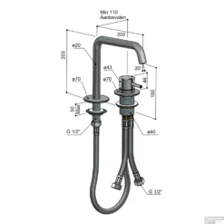 Wastafelmengkraan Hotbath Archie 3 Gats Zonder Waste Geborsteld Gunmetal PVD