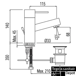 Wastafelmengkraan Metropol HansGrohe 3-Gats 160 Met Rechte Greep En Push-Open Afvoer Mat Zwart