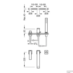 Badrandcombinatie Lagoo Garda Met Mengkraan, Omstel En Handdouche Messing Geborsteld Koper PVD