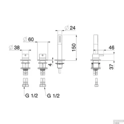 Badrandcombinatie Lagoo Garda Met Mengkraan, Omstel En Handdouche Messing Geborsteld Goud PVD