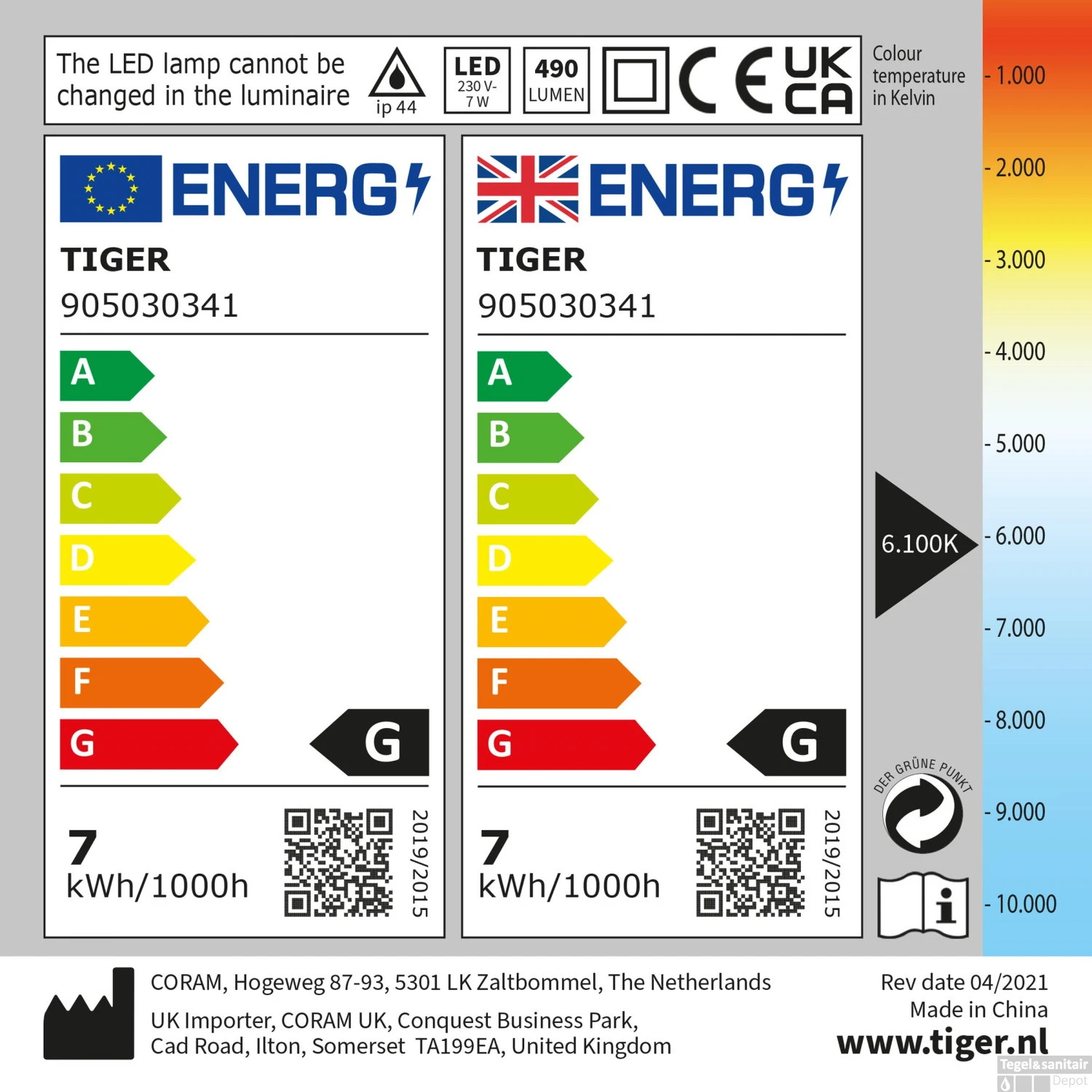De Tiger LED-lamp Aurel is een strakke, moderne designlamp. Door de breedte van de lamp is deze uitermate geschikt om boven de wastafelspiegel te hangen. De lamp kan op 2 manieren gemonteerd worden; zowel op het meubel als op de spiegel. De lamp is uitgevoerd in de kleur chroom. De lamp is voorzien van 7,2 watt LED verlichting met geïntegreerde transformator. De lichtkleur is 6100K.