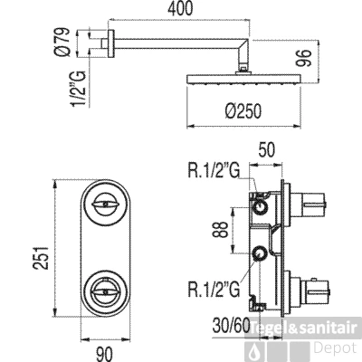 Lex Tres Inbouw Thermostatische Doucheset 181175