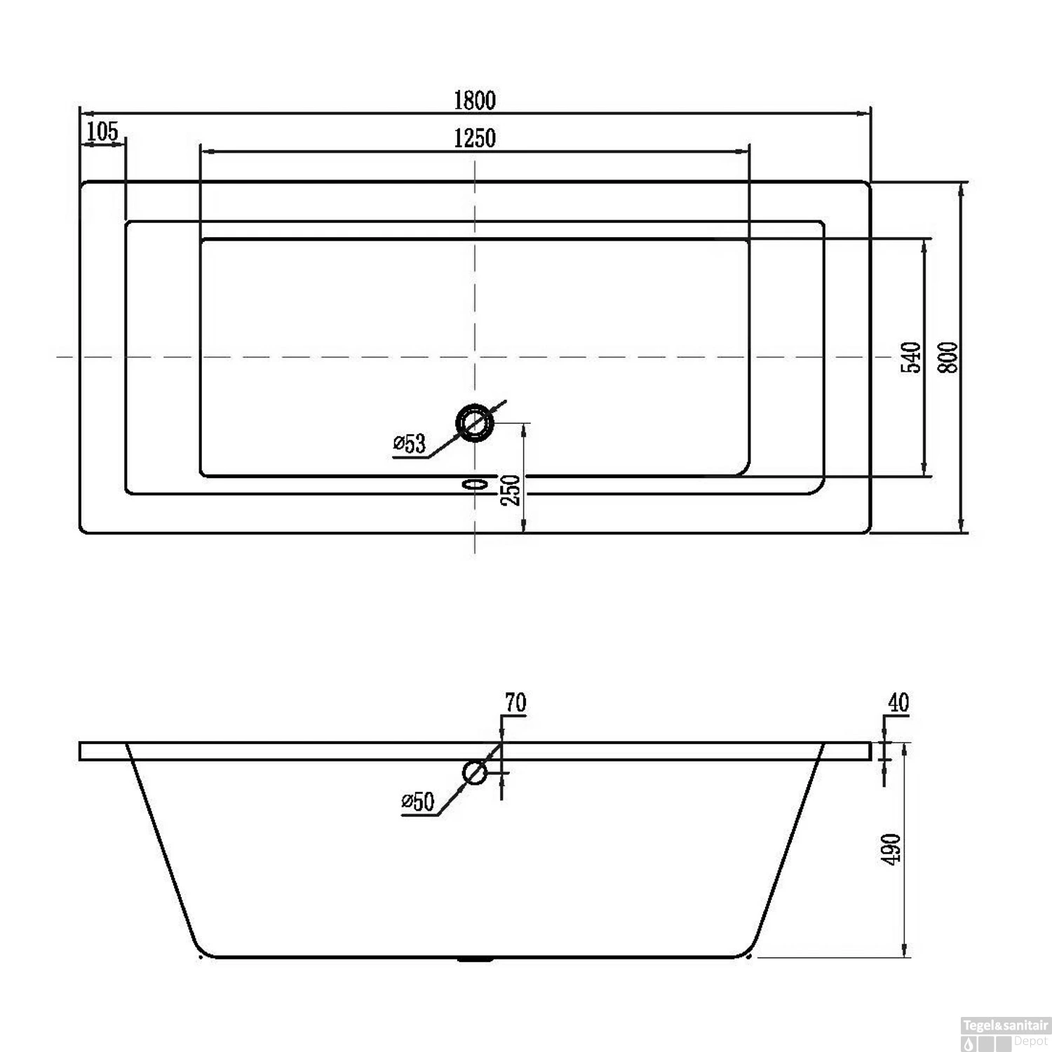 Met dit duo ligbad van Boss & Wessing Sevilla kunt u alleen of samen genieten van een heerlijk warm bad. Het bad heeft een lengte van maar liefst 180 cm. Genoeg plaats dus. Het bad is 80 cm breed en 49 cm hoog. De bodemmaat is 124×45 cm. Het bad is van kunststof. Gemakkelijk schoon te maken en schoon te houden. De diameter van het afvoergat is 5,3 cm.