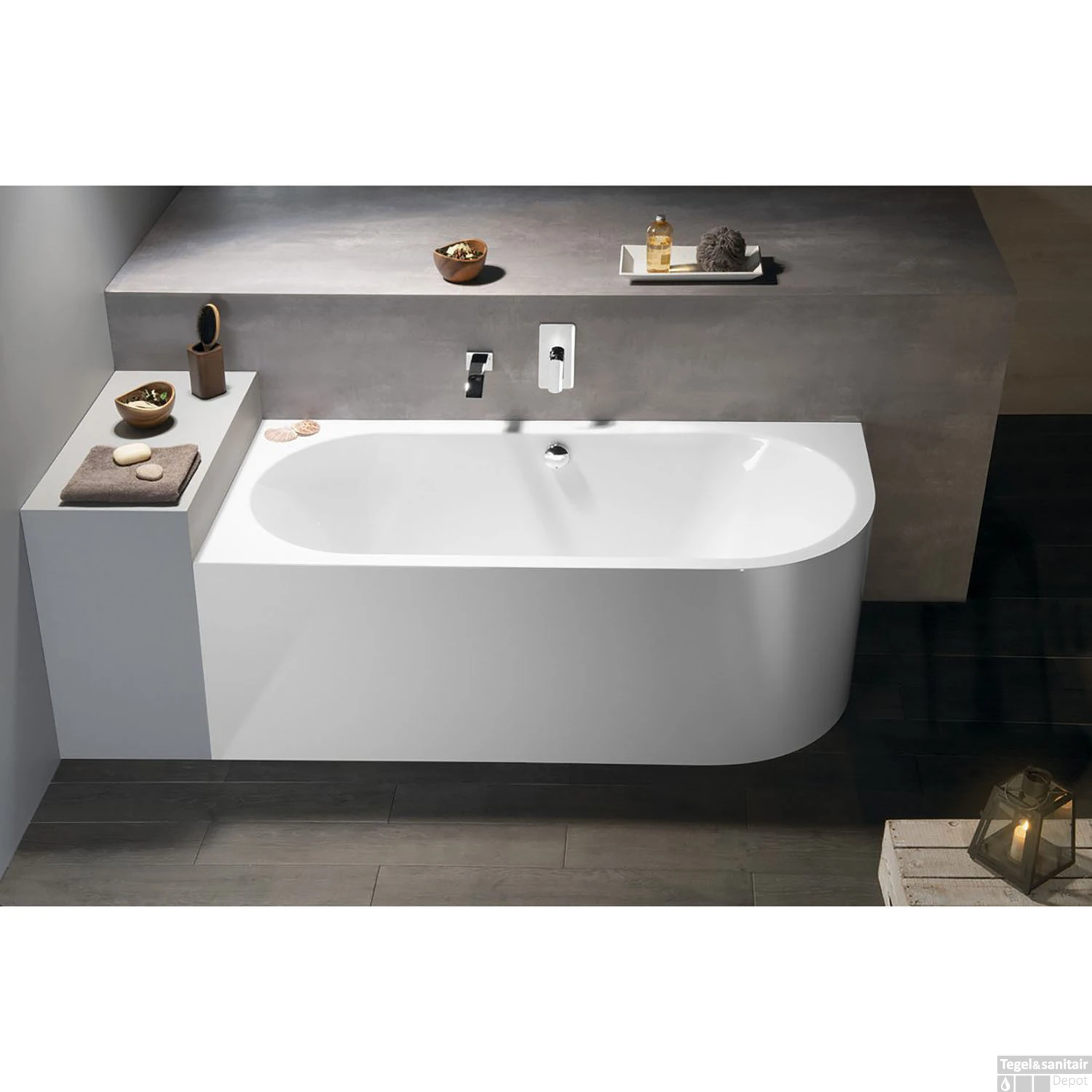 Het bad is gemaakt van Acryl, hierdoor is het ligbad sterk, duurzaam en goed bestendig tegen krassen en chemicaliën. Het materiaal voelt warm aan en heeft een glad en porievrij oppervlak. Hierdoor kan vuil zich lastig hechten aan het materiaal, wat het onderhoud des te eenvoudiger maakt!