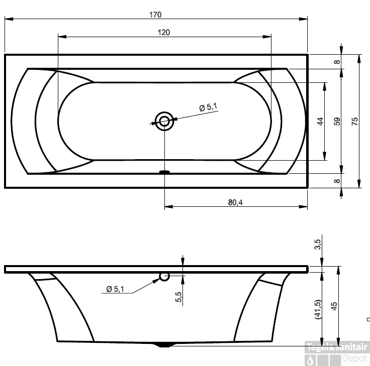 - – Exclusief badpoten en badafvoer
