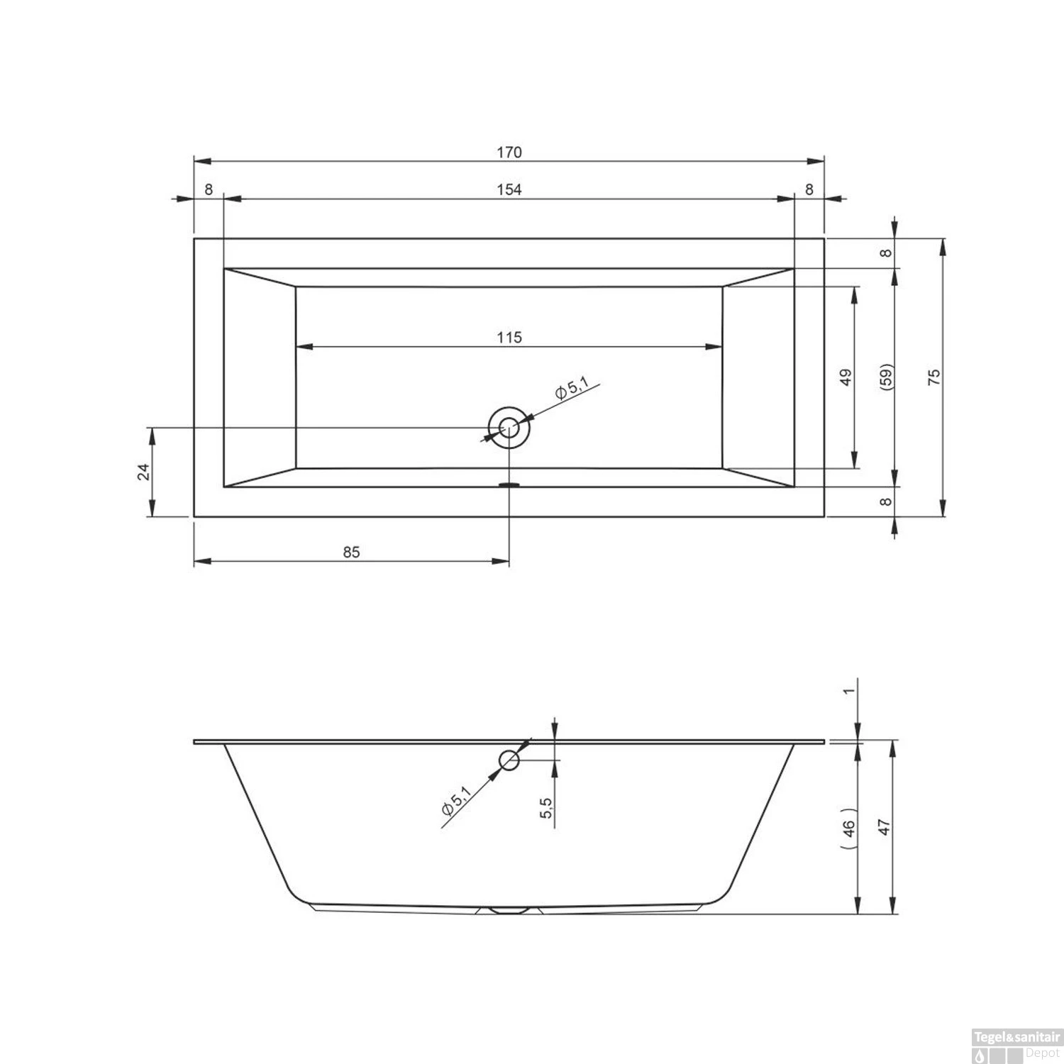 Het Riho Lugo ligbad heeft een afmeting van 170 cm lang en 75 cm breed. Het bad is 46 cm diep. Zie voor uitgebreidere afmetingen de technische tekening. Dit bad heeft daarnaast ook nog eens 10 jaar(!) garantie.