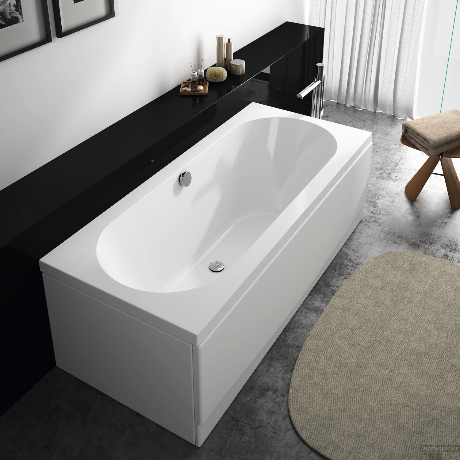 Het bad is gemaakt van hoogwaardig acryl. Acryl heeft vele voordelen. Zo is acryl een kunststofsoort die niet koud aanvoelt. Hierdoor blijft het water langer warm in bad. Ook is acryl poriënvrij. Er hecht dus geen vuil aan en is gemakkelijk schoon te houden.