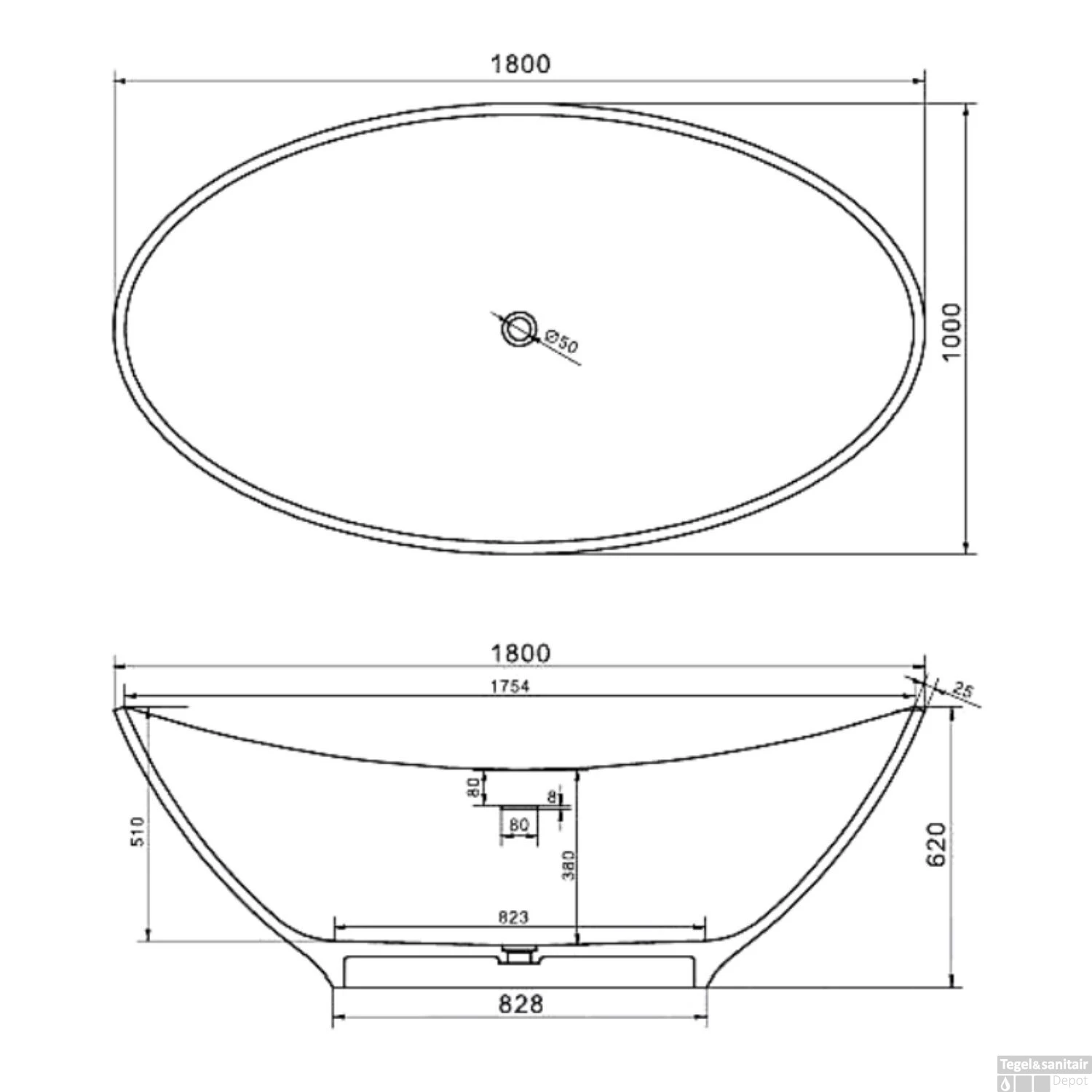 De afmetingen van het ligbad zijn lengte 180 cm, breedte 100 cm en de diepte 62 cm. Met het bad heeft u geen badpoten nodig. Het bad heeft een inhoud van 250 liter water. Het bad is voorzien van een overloop gat en wordt geleverd met een afvoerplug met een mat witte afwerking en een afvoer.