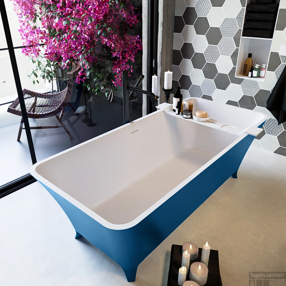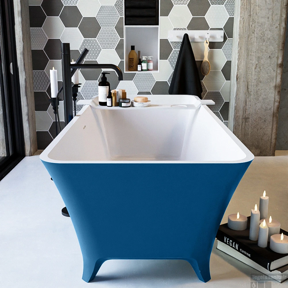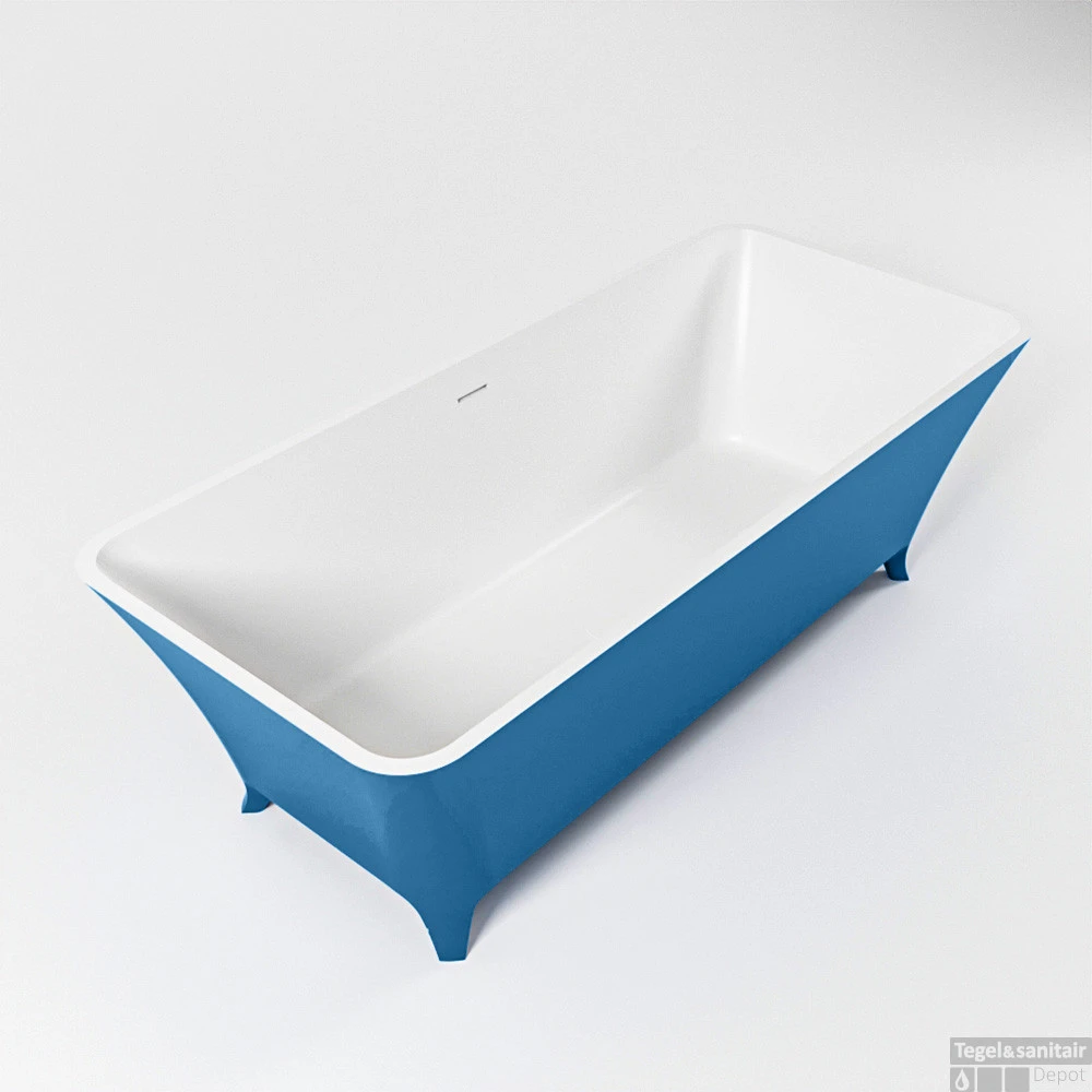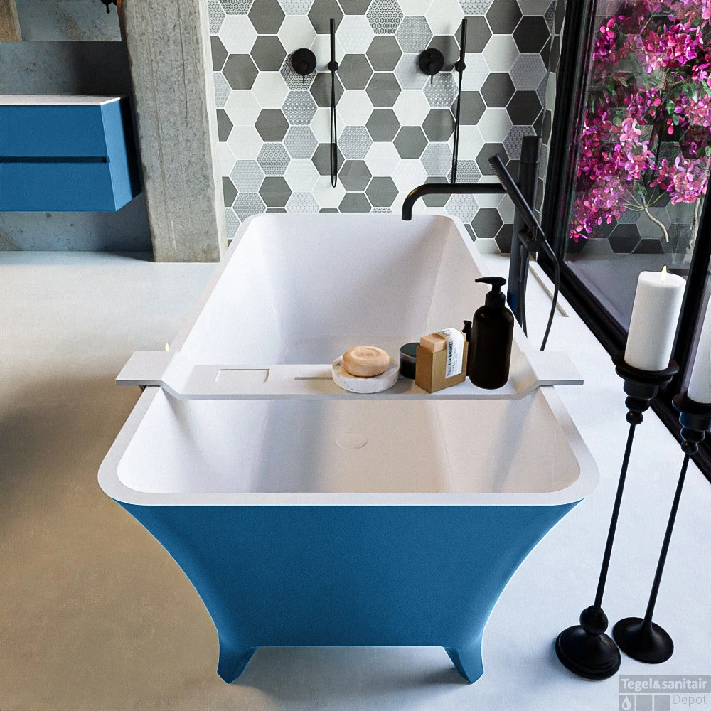 Een bad op pootjes die geweldig staat in elke badkamer. De vorm leent zich voor vrijstaand en half vrijstaand. Deze schitterende opstelling is gecombineerd met het badmeubel VICA zowel de Solid Surface wastafel als het meubel kan in exacte dezelfde kleur als het bad. Zo breng je kleur in je badkamer.