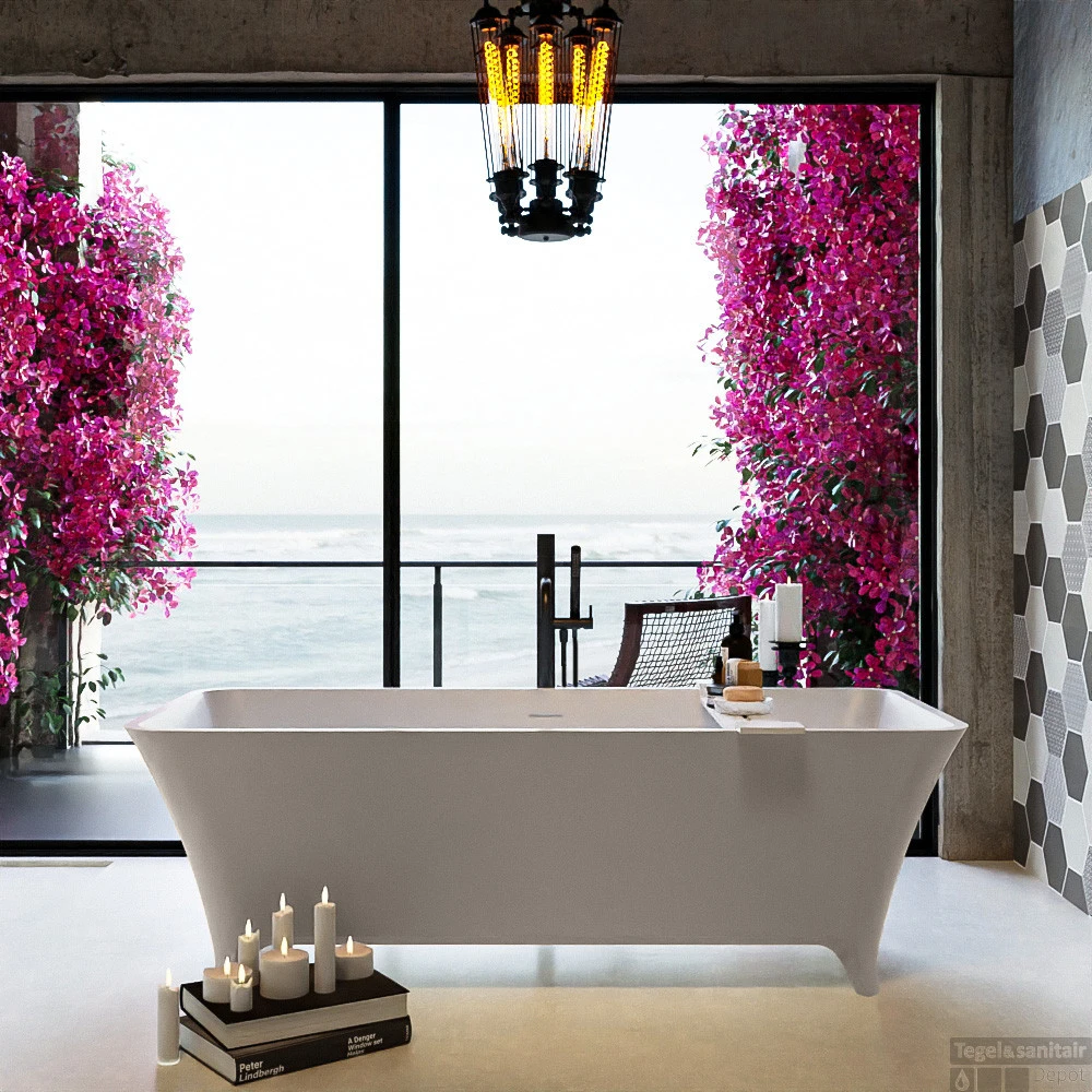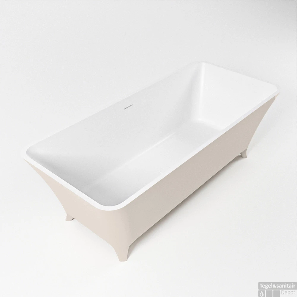 Een bad op pootjes die geweldig staat in elke badkamer. De vorm leent zich voor vrijstaand en half vrijstaand. Deze schitterende opstelling is gecombineerd met het badmeubel VICA zowel de Solid Surface wastafel als het meubel kan in exacte dezelfde kleur als het bad. Zo breng je kleur in je badkamer.
