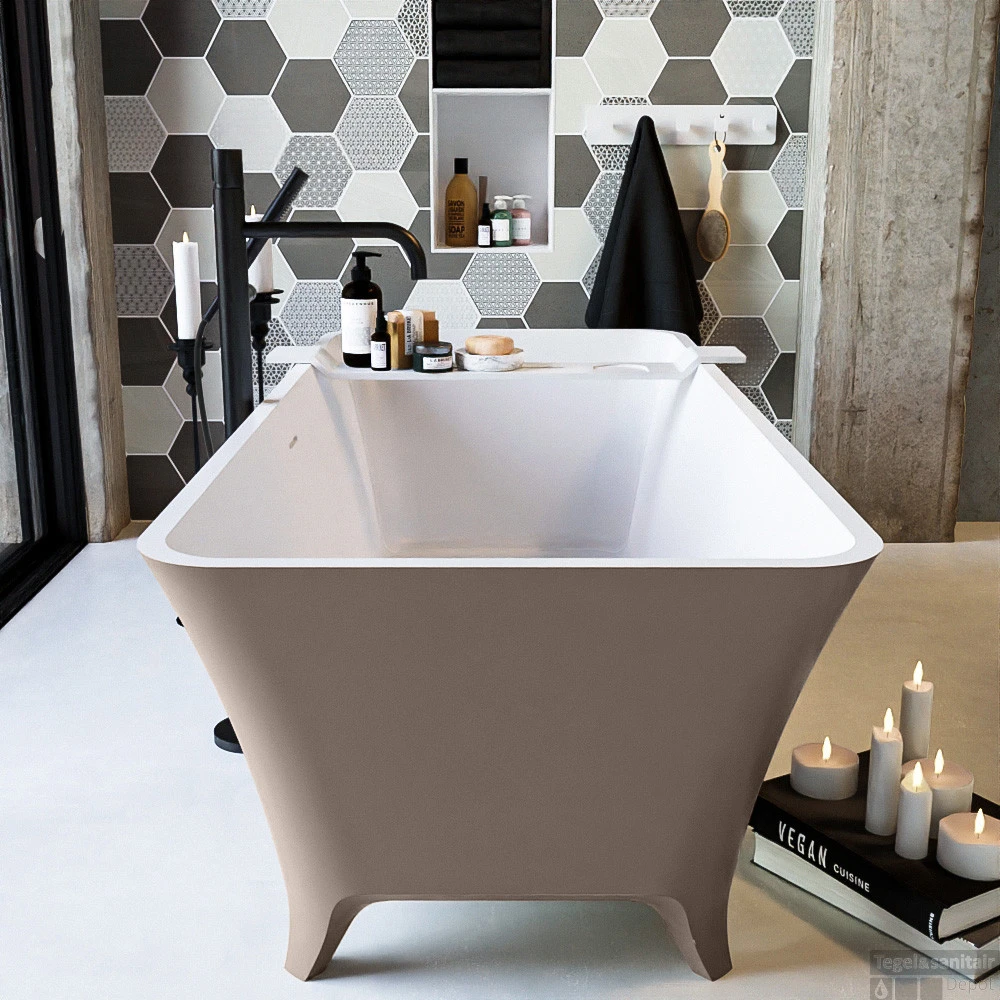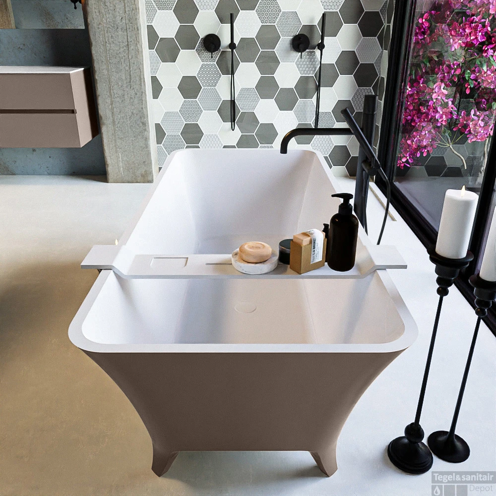 Een bad op pootjes die geweldig staat in elke badkamer. De vorm leent zich voor vrijstaand en half vrijstaand. Deze schitterende opstelling is gecombineerd met het badmeubel VICA zowel de Solid Surface wastafel als het meubel kan in exacte dezelfde kleur als het bad. Zo breng je kleur in je badkamer.