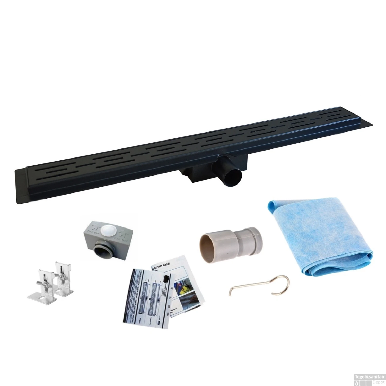 Mat Zwarte RVS Douchegoot Flens met Uitneembaar Sifon 50x7cm 6,7cm Diep MAT ZWART ROOSTER