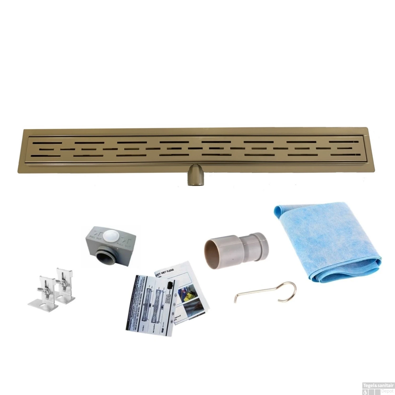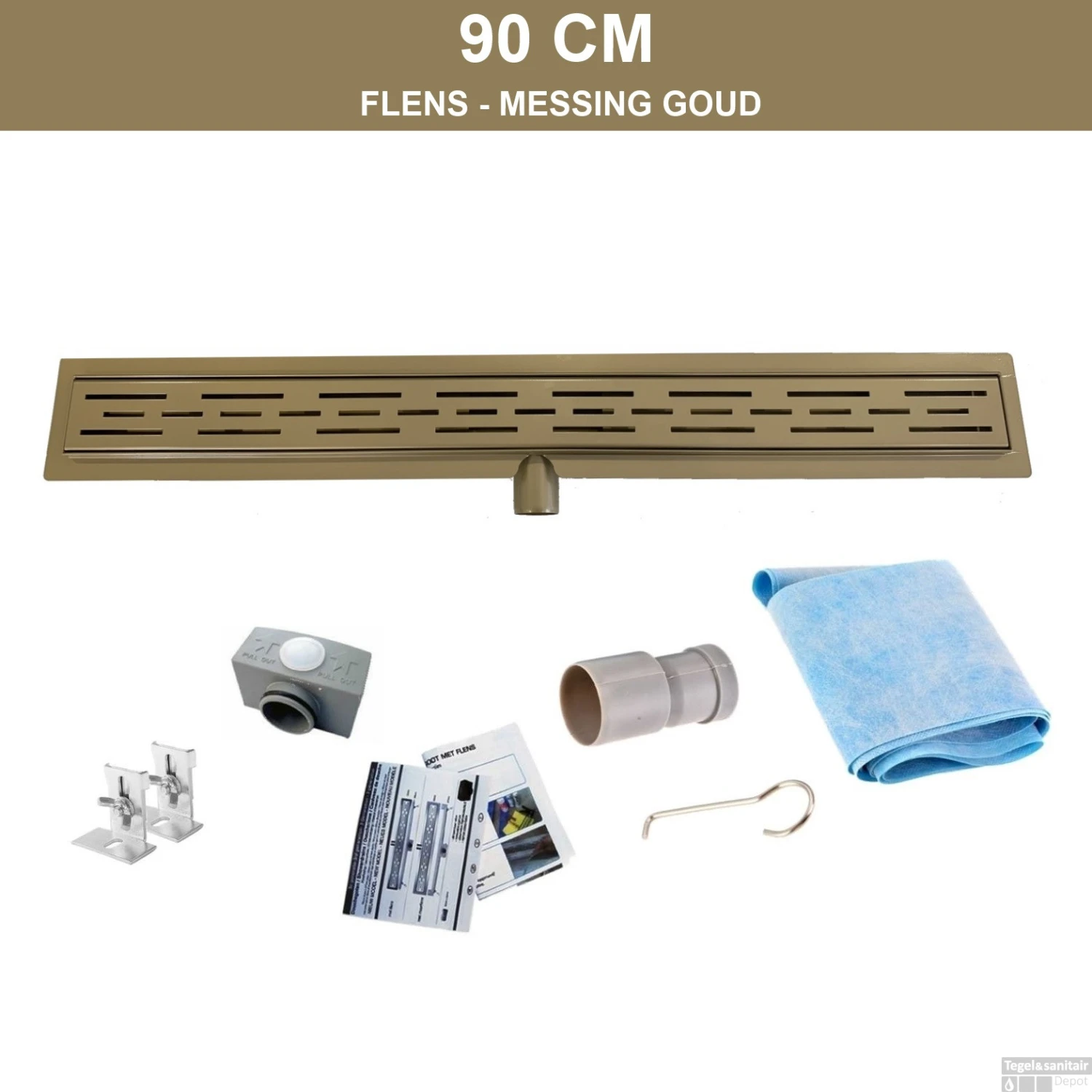 Messing Goud RVS Douchegoot Flens met Uitneembaar Sifon 90x7cm 6,7cm Diep MESSING GOUD ROOSTER
