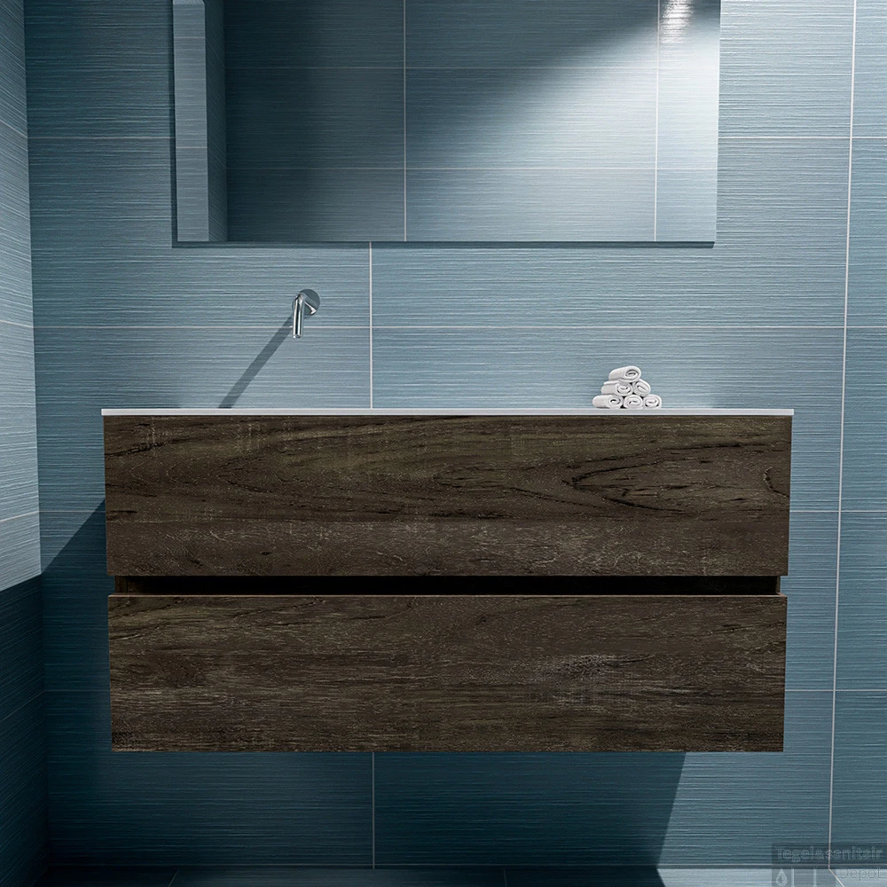 Geef jouw toilet een upgrade met de populaire toiletmeubel serie ADA! Hier zie je de vrijhangende onderkast ADA van 100cm breed met 2 lades in de kleur dark brown en een solid surface wastafel model LEX in de kleur Talc. De positie van de spoelbak is links zonder kraangat. In deze toiletmeubel serie hebben wij al meer dan 600 variaties samengesteld! Daarnaast is maatwerk mogelijk.