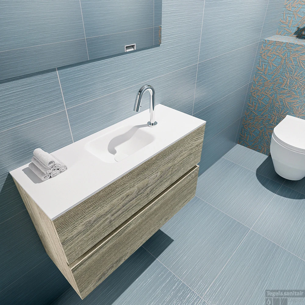 Geef jouw toilet een upgrade met de populaire toiletmeubel serie ADA! Hier zie je de vrijhangende onderkast ADA van 80cm breed met 2 lades in de kleur light brown grey en een solid surface wastafel model LEX in de kleur Talc. De positie van de spoelbak is midden 1 kraangat. In deze toiletmeubel serie hebben wij al meer dan 600 variaties samengesteld! Daarnaast is maatwerk mogelijk.