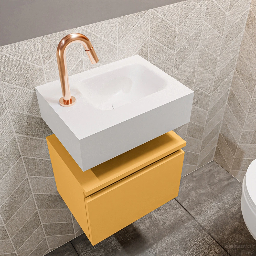 MONDIAZ MONDIAZ ANDOR 40cm toiletmeubel ocher. LEX 40cm wastafel talc rechts 1 kraangat