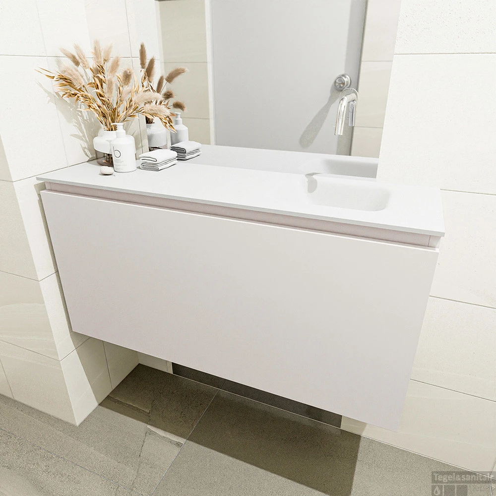 MONDIAZ MONDIAZ OLAN 100cm toiletmeubel linen. LEX wastafel talc rechts geen kraangat