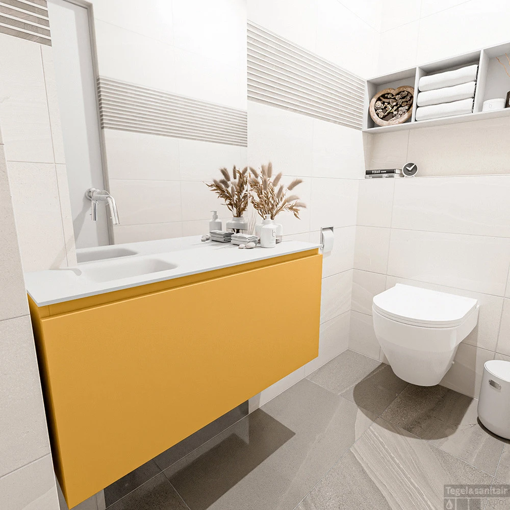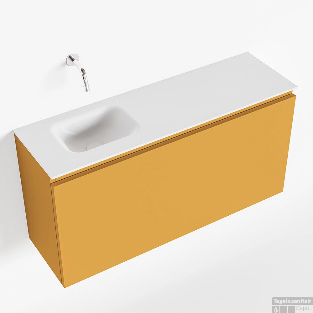 MONDIAZ MONDIAZ OLAN 100cm toiletmeubel ocher. LEX wastafel talc links geen kraangat